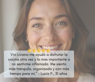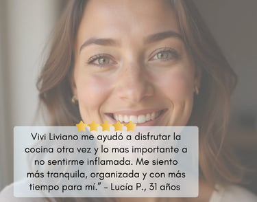 Si no te ayuda a disfrutar las comidas sin inflamarte y a organizar tu cocina, te devolvemos tu inversión.
