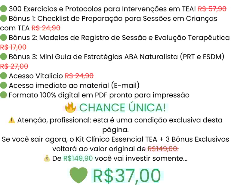 Kit Clínico Essencial TEA — 300 exercícios e protocolos para intervenções mais eficazes