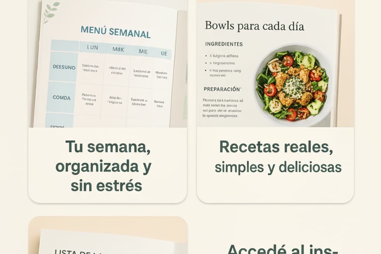 Guía práctica con recetas antiinflamatorias y sin gluten para que planifiques tus comidas sin estrés — incluso después de un día largo de trabajo.